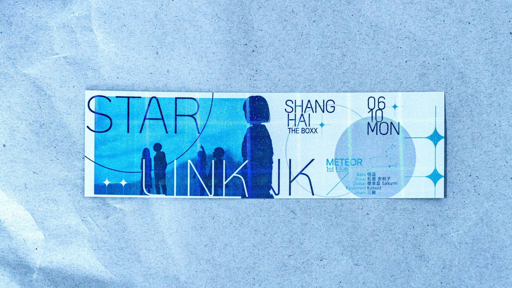 I was responsible for the illustration, typography, and product design, as well as choosing materials and production techniques for key items like badges, tickets, and glow sticks. Every piece, from the concert logo to the T-shirts, was carefully designed to create a cohesive and immersive brand experience. The blue color scheme reinforces the Starlink concept, giving the merchandise a unified and memorable look.