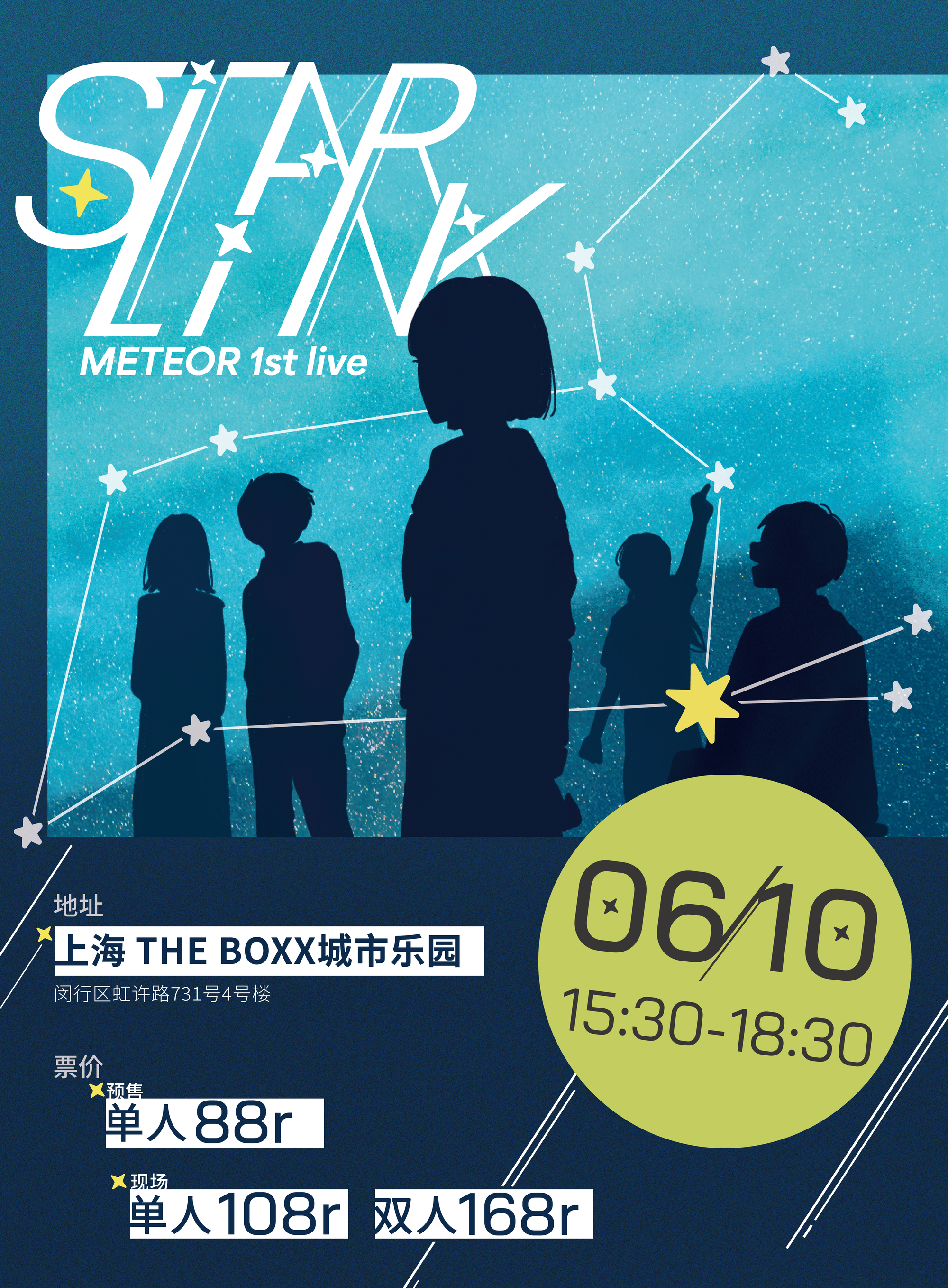 Concert merchandise is more than just souvenirs—it’s a way for fans to connect with the music and relive the energy of a live performance. For Meteor’s first live concert, Starlink, I designed a comprehensive visual identity and merchandise collection that enhances the emotional bond between the band and its audience. The designs reflect the concert’s celestial theme, symbolizing stars and the connection between performers and fans.